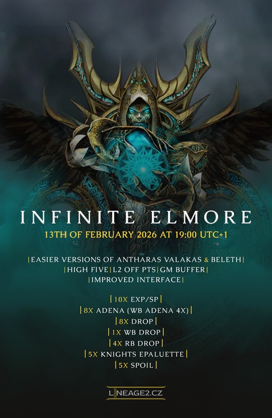 [L2 OFF] Lineage2.cz - INFINITE ELMORE 10x [H5] [13.2.2026]